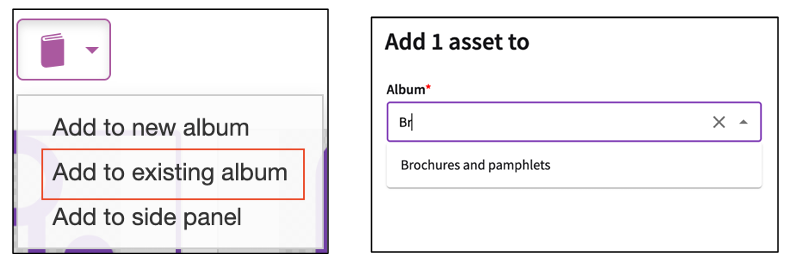 Users can now add assets to an album more easily than ever before with the updated interface that allows the user search for existing albums where they want to put their assets.