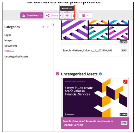 1. Select the assets you want to add to the category and click the “Move Asset” button from the asset action bar.