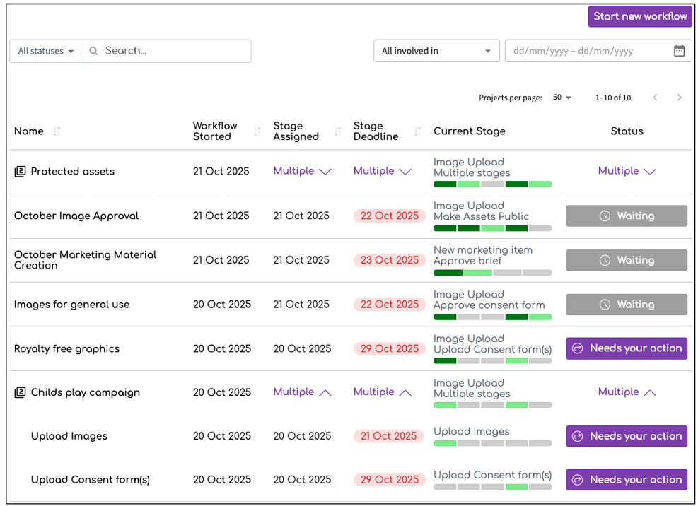 In response to client feedback, we've updated our workflow dashboard block to deliver significantly improved performance, especially when managing large volumes of workflows, where performance was previously a concern.