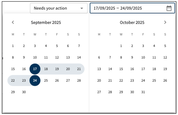 The Workflow Dashboard now has a date selection filter that you can use view projects by within a specific date range based on the date values shown in the table.