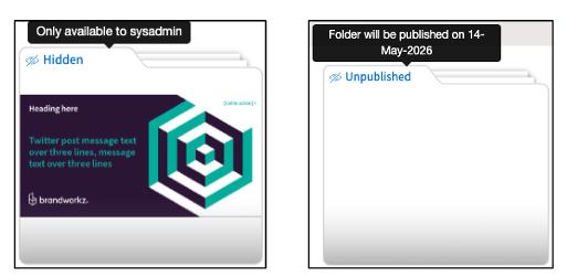 You can now view labels for folders in Search that are “Hidden” or “Unpublished”. When you hover over the labels you can get more information such as who can access a hidden folder and when an unpublished folder will be published.